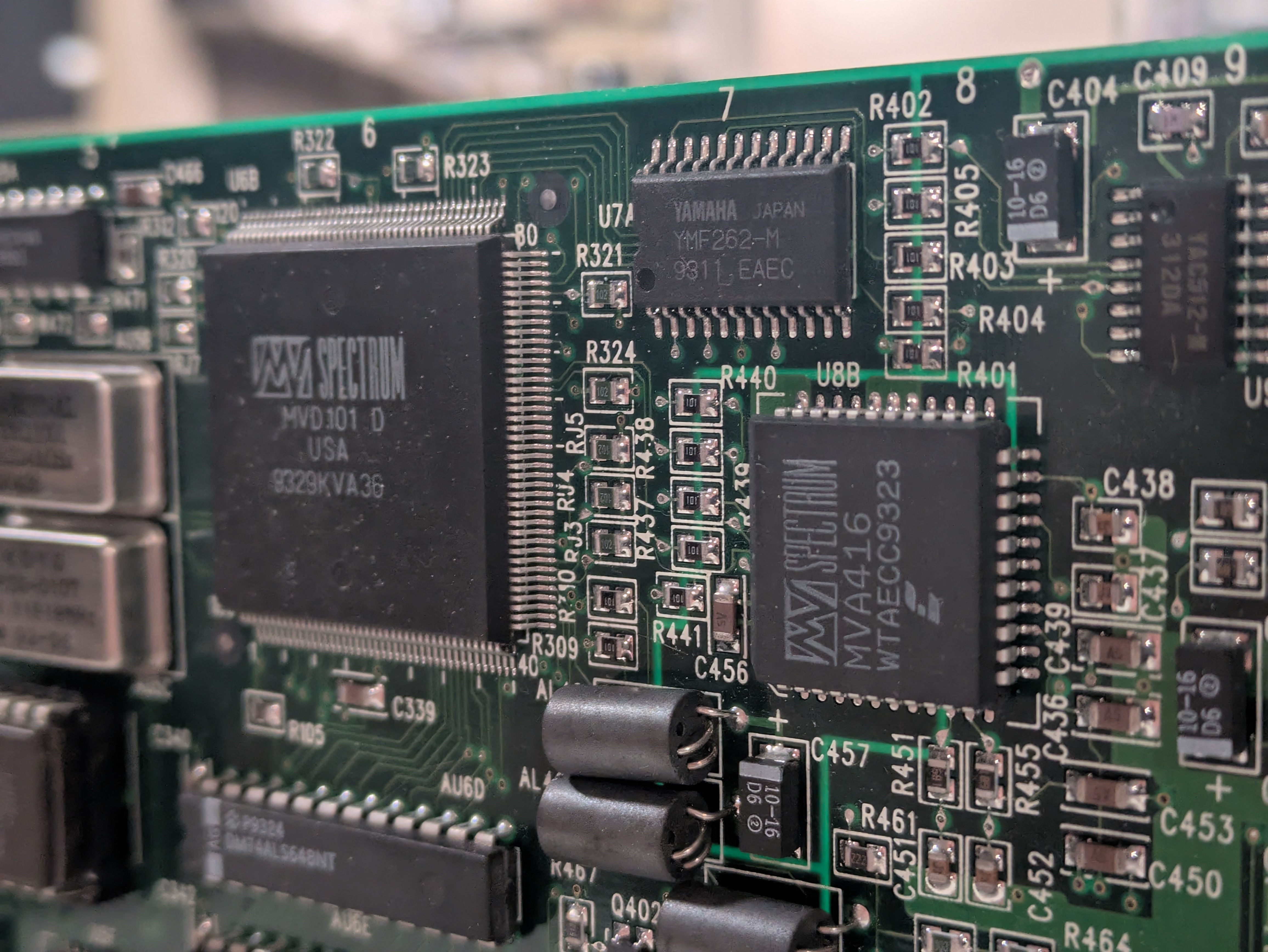 So, at this point I decided that I wasn't going to take "no" for an answer, and that if the chip is there, it has to be hooked up somehow. I initially reached out on the 68kMLA forums to see if anyone had looked into this before. The answer was effectively "nope, you're the first one to ask" but we did find a couple things. Namely, the card had a very barebones DeclROM compared to a native Mac card, and that the OPL3 was definitely connected to the rest of the card - namely, it was electrically connected to the main MVD101-D IC and mixer chips in the same manner as it would be on a PC PAS16 card.